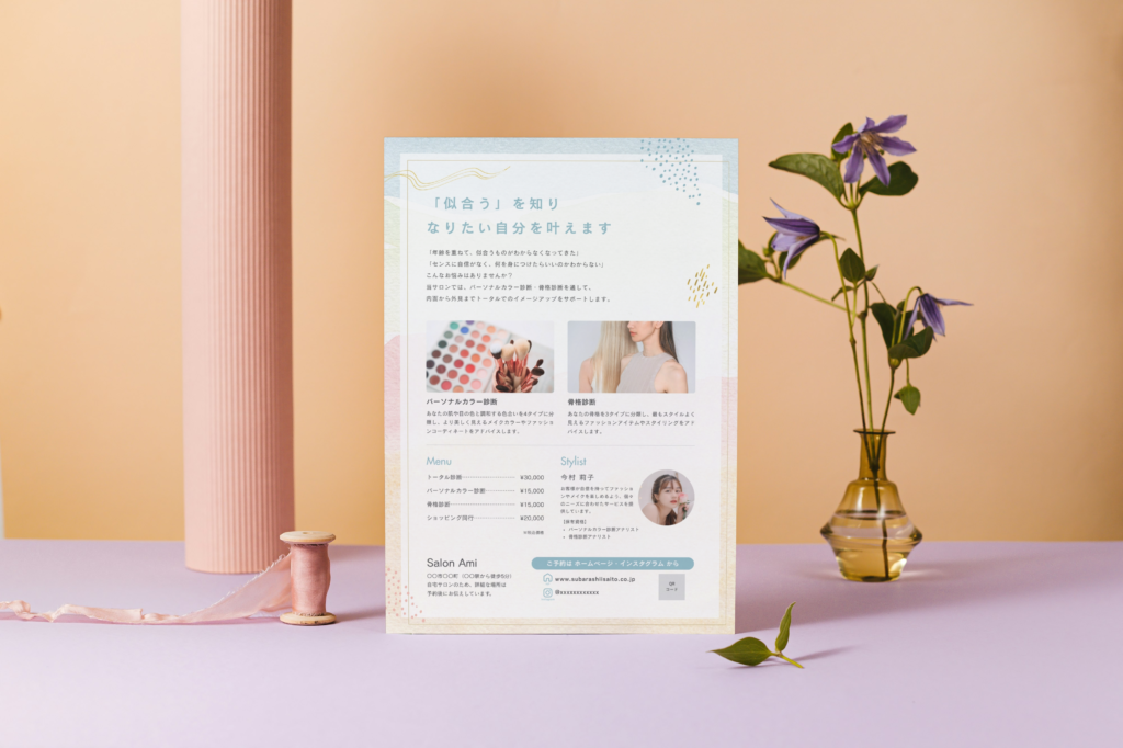イメコンサロンの販促に使える、チラシのテンプレートです。
