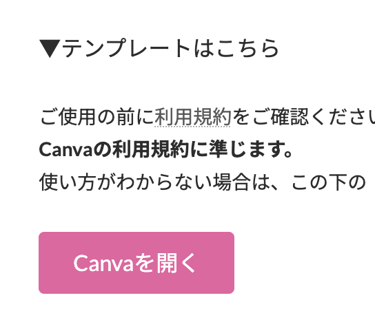 - 上にある【Canvaを開く】ボタンを押すと、Canvaに移動します。